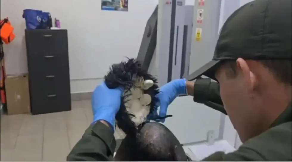 Según narra el Brigadier General Gelver Peña, camuflados en el peluquín, se encontraban 220 gramos de cocaína. Todo quedó grabado en video.