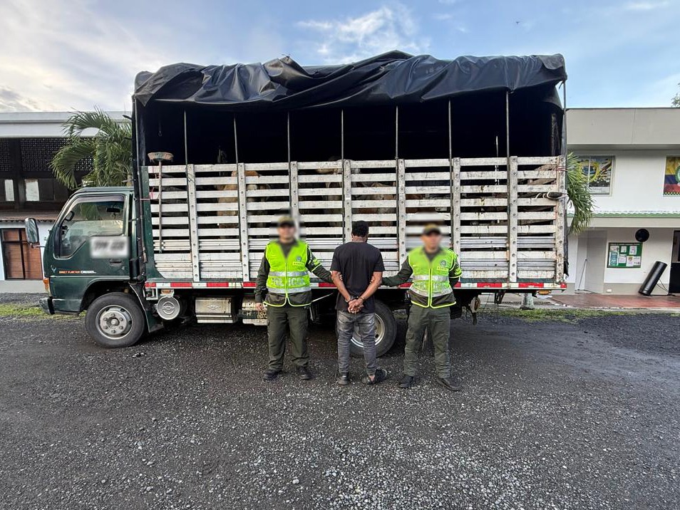 Gracias a los controles desarrollados en las vías de acceso a la capital risaraldense y a las coordinaciones desarrolladas con la Policía del Departamento del Valle, es interceptado en el sector del peaje de Cerritos, un hombre de 48 años, quien se movilizaba en un vehículo tipo camión, el cual en su interior transportaba nueve semovientes bovinos, los cuales al parecer habrían sido hurtados.